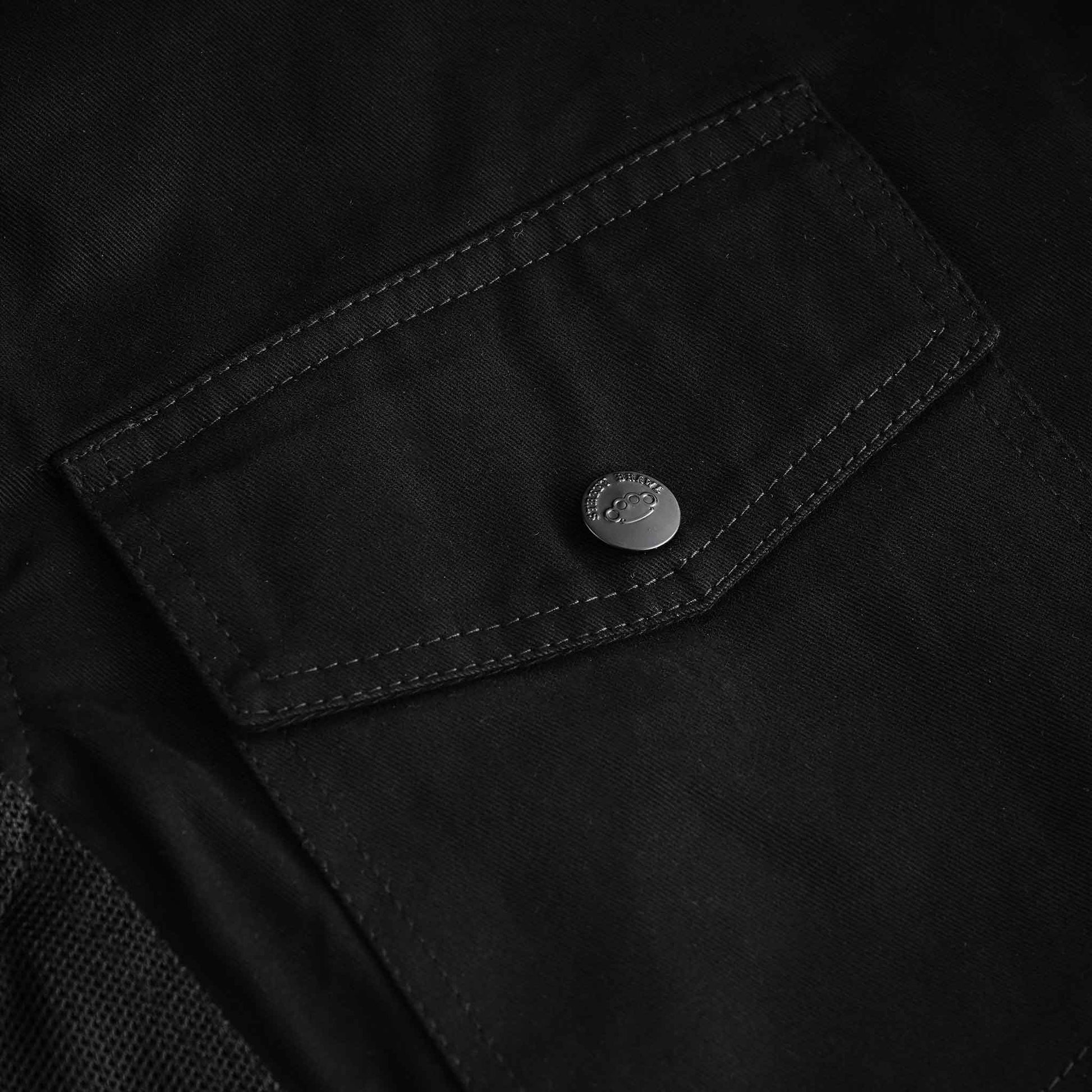 CE armored. Kevlar® reinforced. Cotton-nylon twill with mesh airflow.
